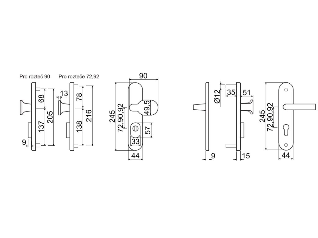 - 92 mm (tloušťka dveří 66 - 75 mm)