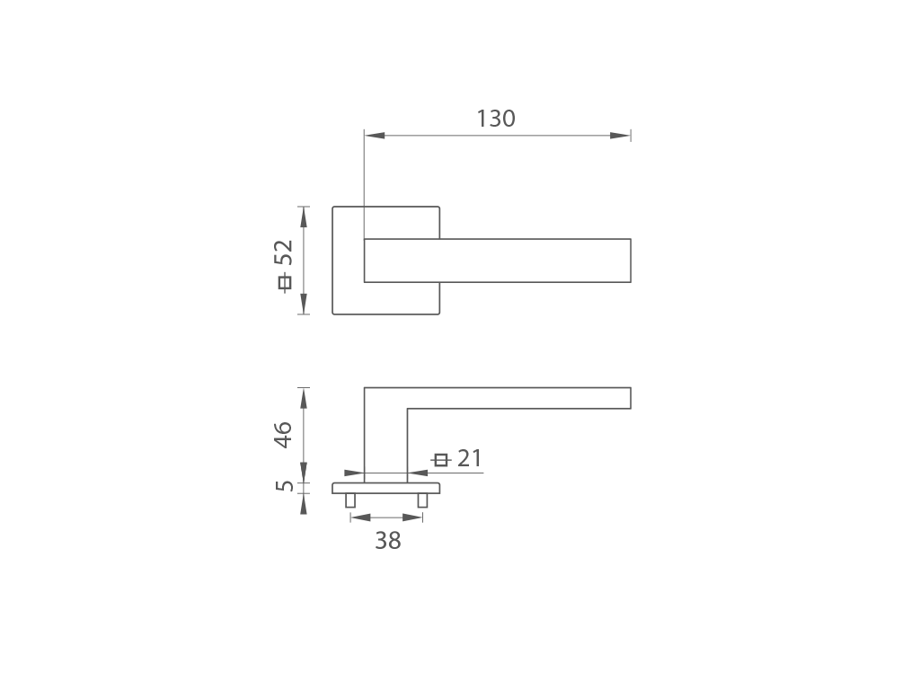 - rozetové kování: hranatá rozeta