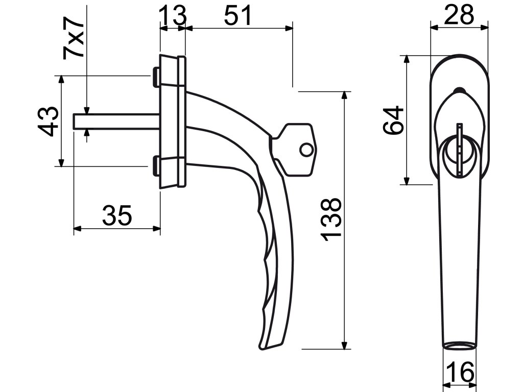Richter okenní kování - balkonová klika RHW.009.L.F9 (imitace nerezu)