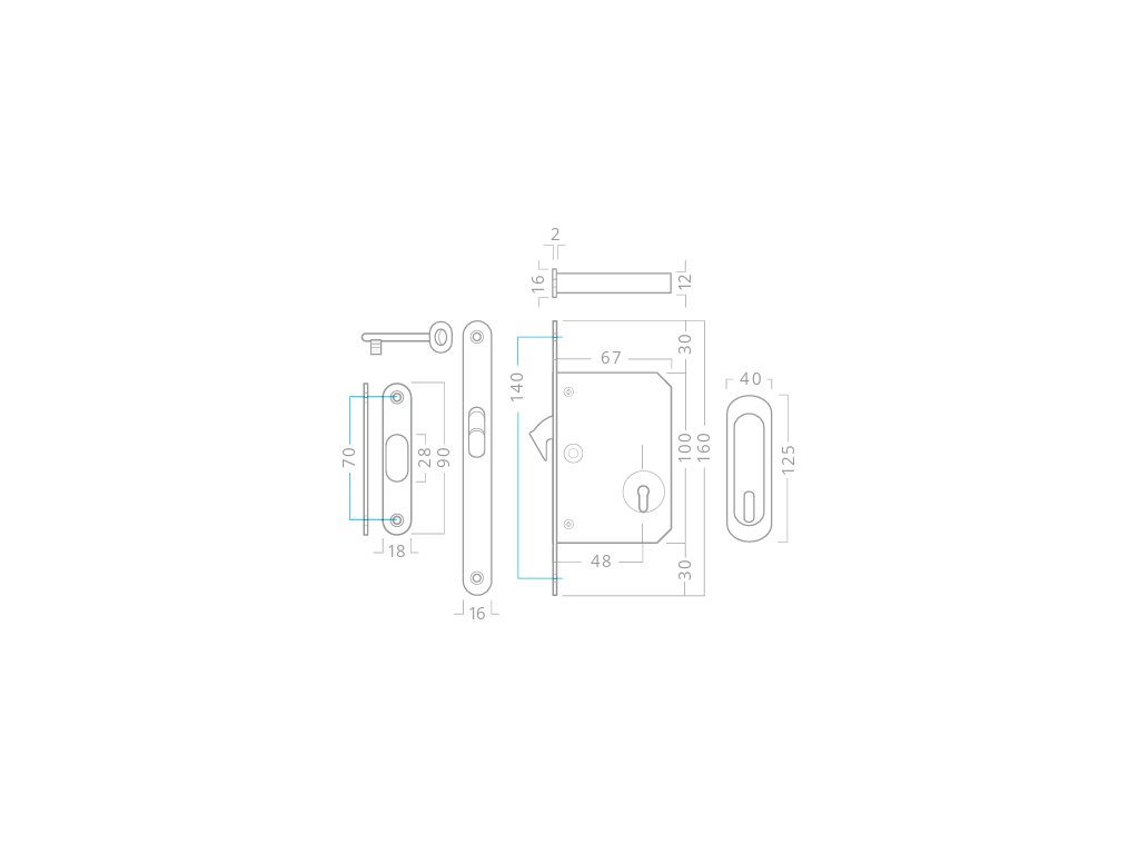 - zámek pro posuvné dveře s dozickým klíčem